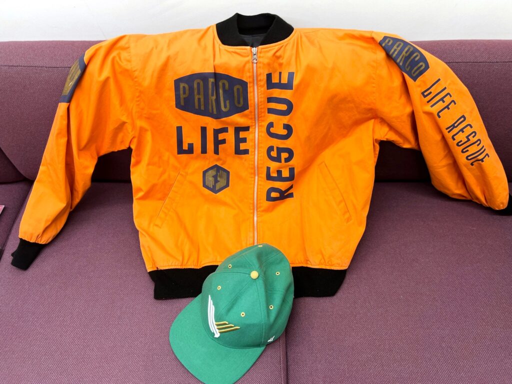 ネヴィル・ブロディデザインのライフレスキュージャケットと東京ヴェルディのロゴ入りキャップ
